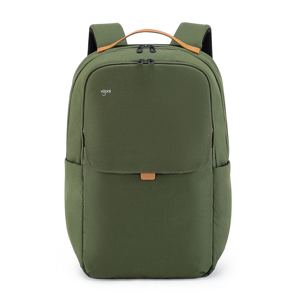 This vgoal backpack features a minimalist olive green design with leather accents, ideal for both casual and business use. It offers dedicated compartments for laptops and daily essentials, with a sleek, organized structure. The durable fabric and ergonomic straps ensure comfort and functionality, making it a perfect choice for commuters, students, and anyone seeking a stylish yet practical backpack.