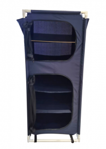 This camping cabinet is a practical storage solution for outdoor adventures. Featuring a multi – tier design with shelves and a hanging rod, it offers ample space to organize clothes, camping gear, and other essentials. The cabinet is made of durable fabric and supported by sturdy pipes, ensuring stability and longevity. With its compact and collapsible structure, it’s easy to transport and set up at campsites. Whether you need to keep your camping items tidy or have a dedicated space for personal belongings, this cabinet combines convenience and functionality for a better outdoor experience.