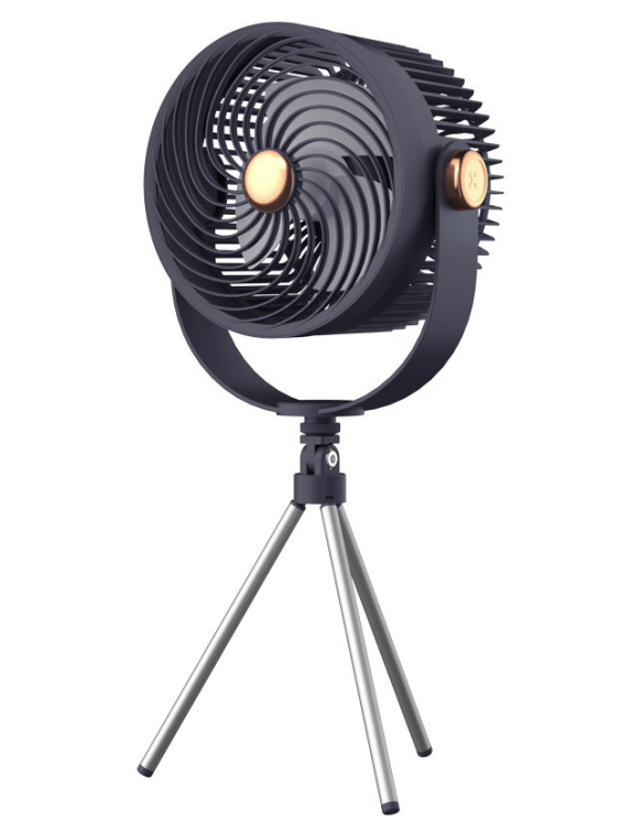 Tailored for outdoor use, this fan works seamlessly in campsites, backyards, balconies, and more. Its adjustable angle and tripod stand let you direct airflow exactly where you need it, providing instant cooling for relaxation or activities. The sleek black design with metallic accents adds a modern touch to any outdoor space.