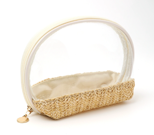 Handwoven Cosmetic Organizer Portable Waterproof Makeup Bag Straw-Woven Travel Storage