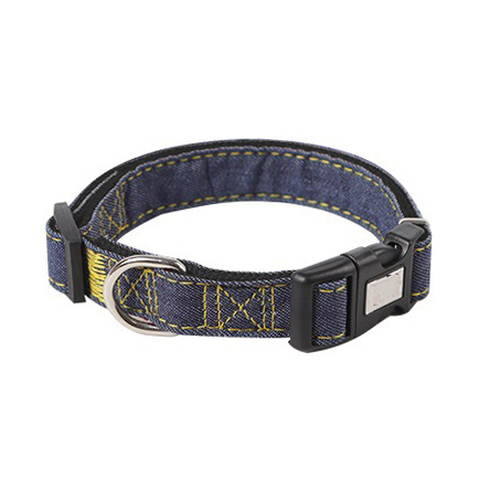 Y06020 Denim Style Dog Collar (Durable Adjustable Pet Neck Strap with Yellow Stitching)